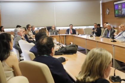 Após a pauta ordinária da reunião da Comissão de Planejamento e Controle do HCFMUSP, órgão consultivo presidido pelo Prof. Dr. Giovanni Guido Cerri, a Administração Superior do Complexo recebeu nesta terça-feira (18/11) o Diretor-Presidente da Agência Nacional de Saúde Suplementar (ANS), Dr. Wadih Damous.