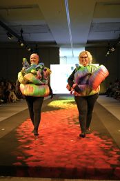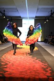 As roupas foram produzidas por alunos do curso de Moda da faculdade Santa Marcelina, parceira do evento. Os estudantes conversaram previamente com os modelos, para entender suas trajetórias, personalidades e suas jornadas de tratamentos.
